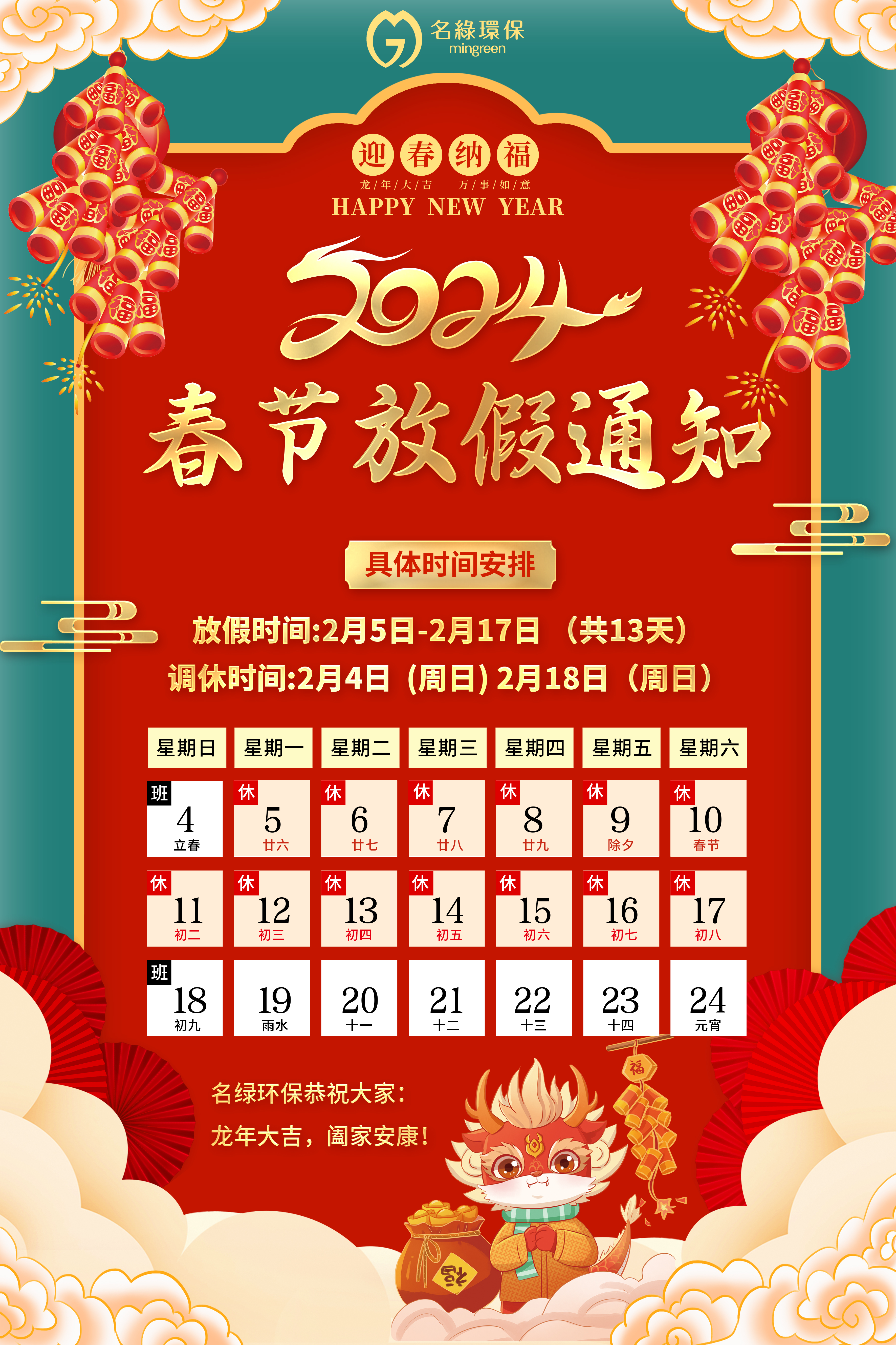 名綠環(huán)保2026年春節(jié)假期安排出爐!