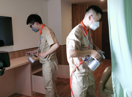 根據(jù)施工現(xiàn)場每個(gè)室內(nèi)空間的面積大小,裝修環(huán)境,軟裝布置等情況各不相同,采用業(yè)內(nèi)首創(chuàng)的“3+N”治理配方,嚴(yán)格按照“測、配、治、查”四大步驟執(zhí)行,全面細(xì)致的處理每個(gè)角落,確??諝鈨艋_(dá)到理想效果。